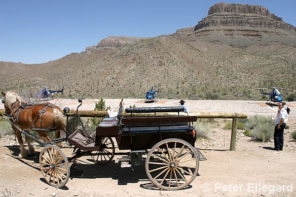 Wagon and three Heli USA helicopters, Grand Canyon West Ranch